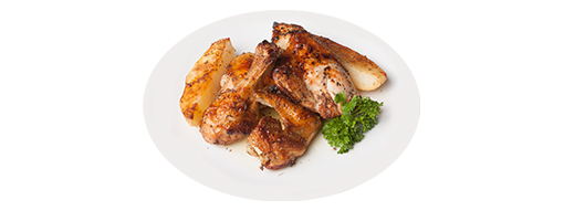Half Athenian chicken and half slab ribs. All white meat $3.00