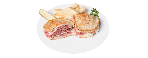 Thousand Island dressing, corned beef, sauerkraut, mozzarella and Swiss cheese on marble rye